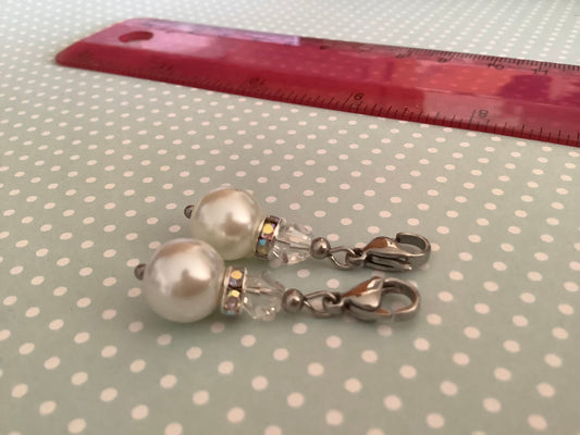 2 Piece Zipper Pull Set, Glass Pearls with Stainless Steel Clasps, Purse Zipper Charm for Bookbags, Necklaces, Wedding Dresses, Bible Cases.