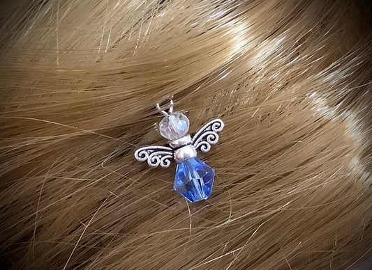2 pc. ladies blue crystal bobby-pin Angels, Tiny Angel for hair, formal or everyday hair pin, decorative hair accessories, pretty hair pins