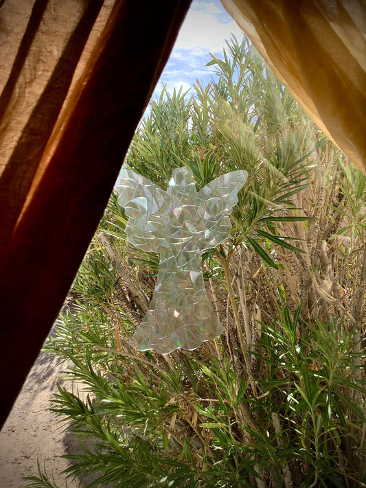 An Angel at my window cling, static cling Angel, Guardian Angel faux stainless glass, rainbow Angel, watching over you, suncatcher, prism