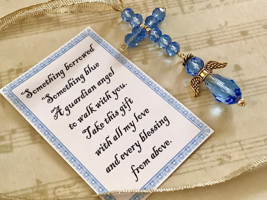 An Angel for the Bride | Something blue for bridal bouquet | cross charm | wedding day gift for daughter