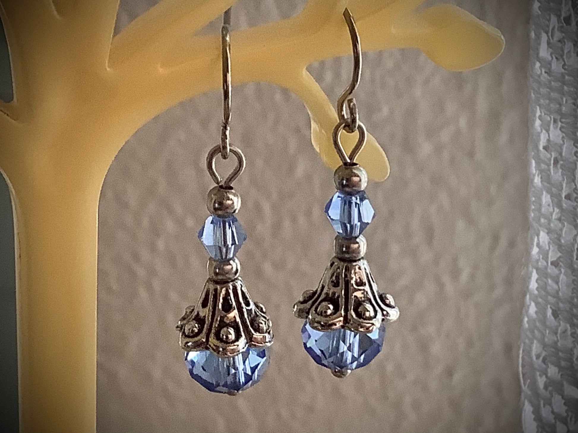 Lovingly Handmade Victorian Style, Vintage Look Earrings. Bring the timeless and elegant beauty of yesteryear to your everyday. Blue Glass Earrings, Vintage Style Earrings, Victorian Jewelry, Light Blue Glass Dangle Drop Earrings, Something blue earrings