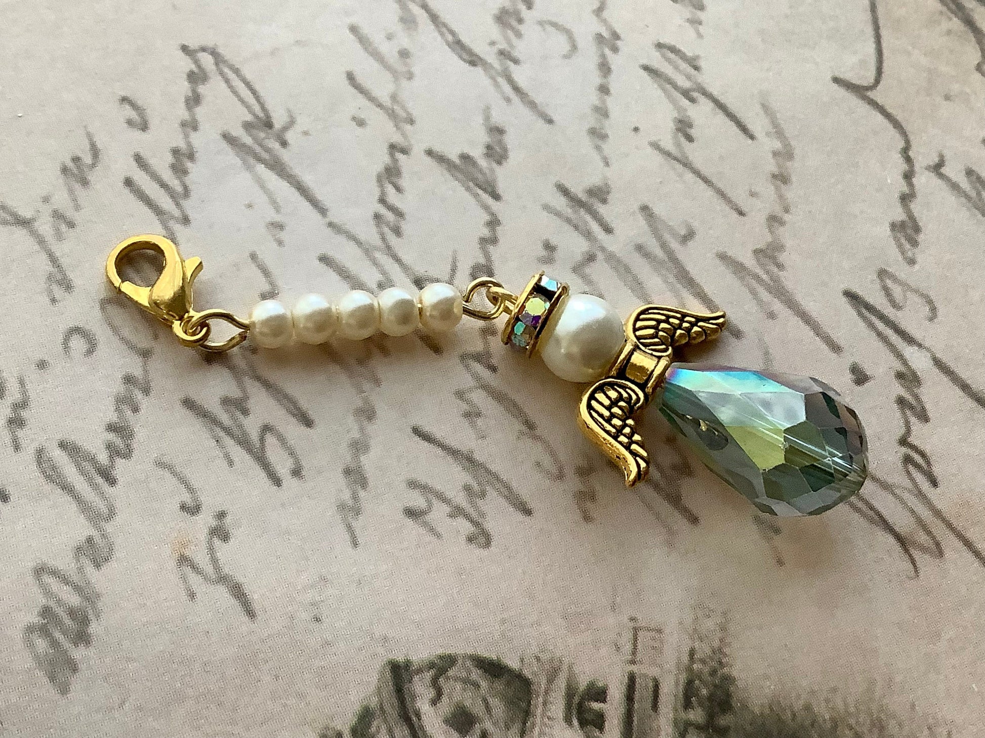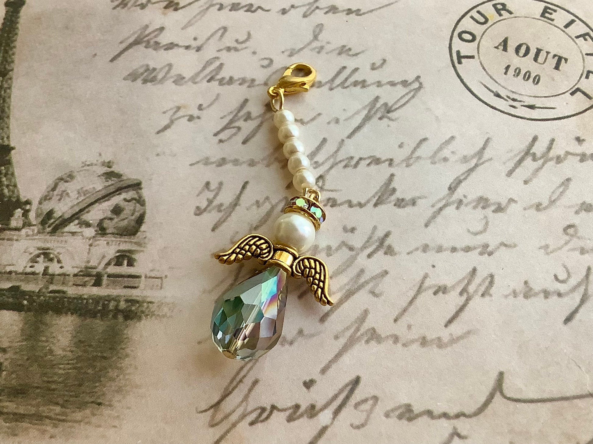 Crystal Angel charm for wedding bouquet, dainty gift for the bride