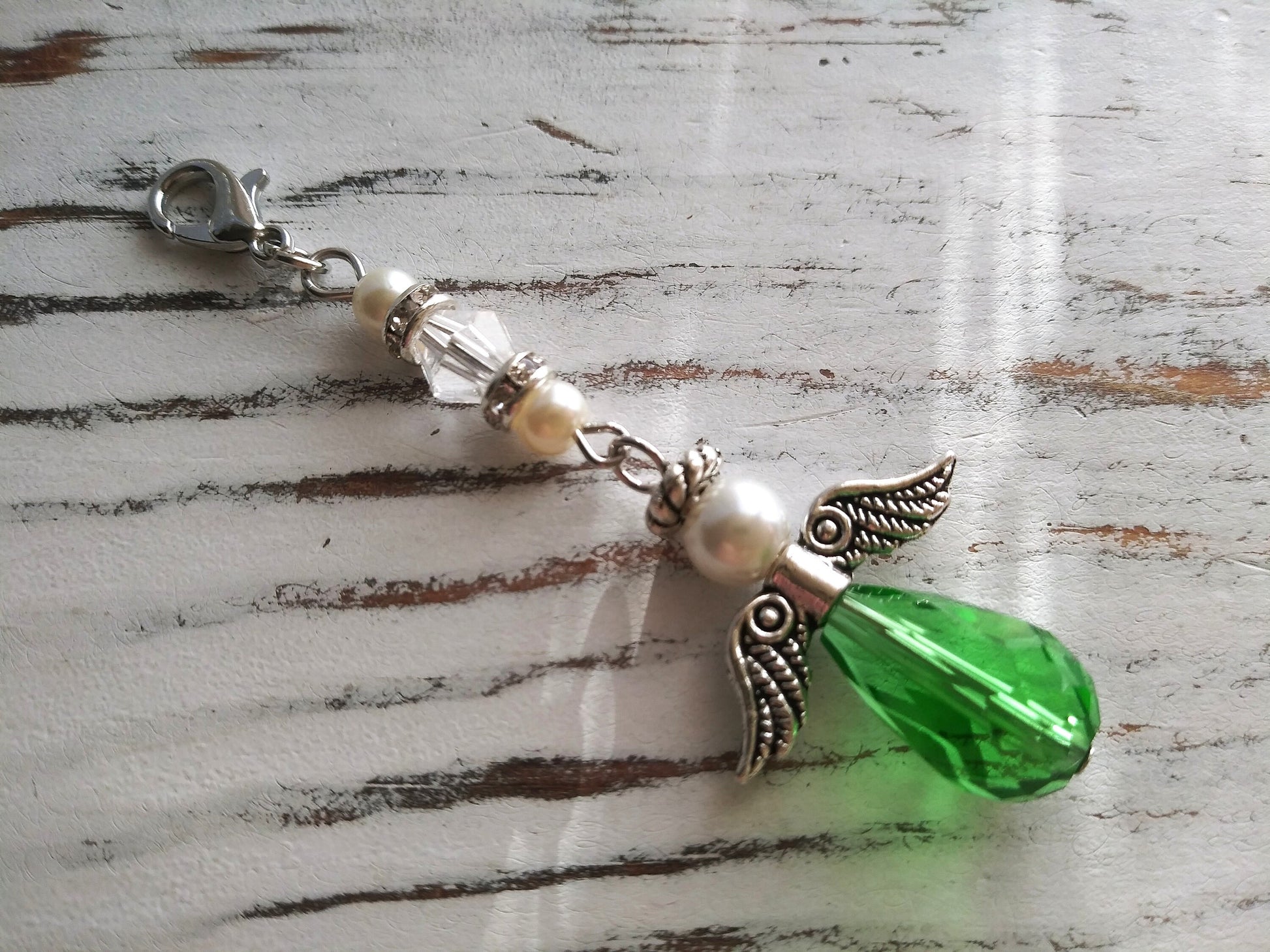 Lucky Angel Charm, Memory Charm, Bible Case, Purse, Car Charm, Planner Charm Luck Angel Charm, Green Crystal, Green Angel, Long Charm Dangle