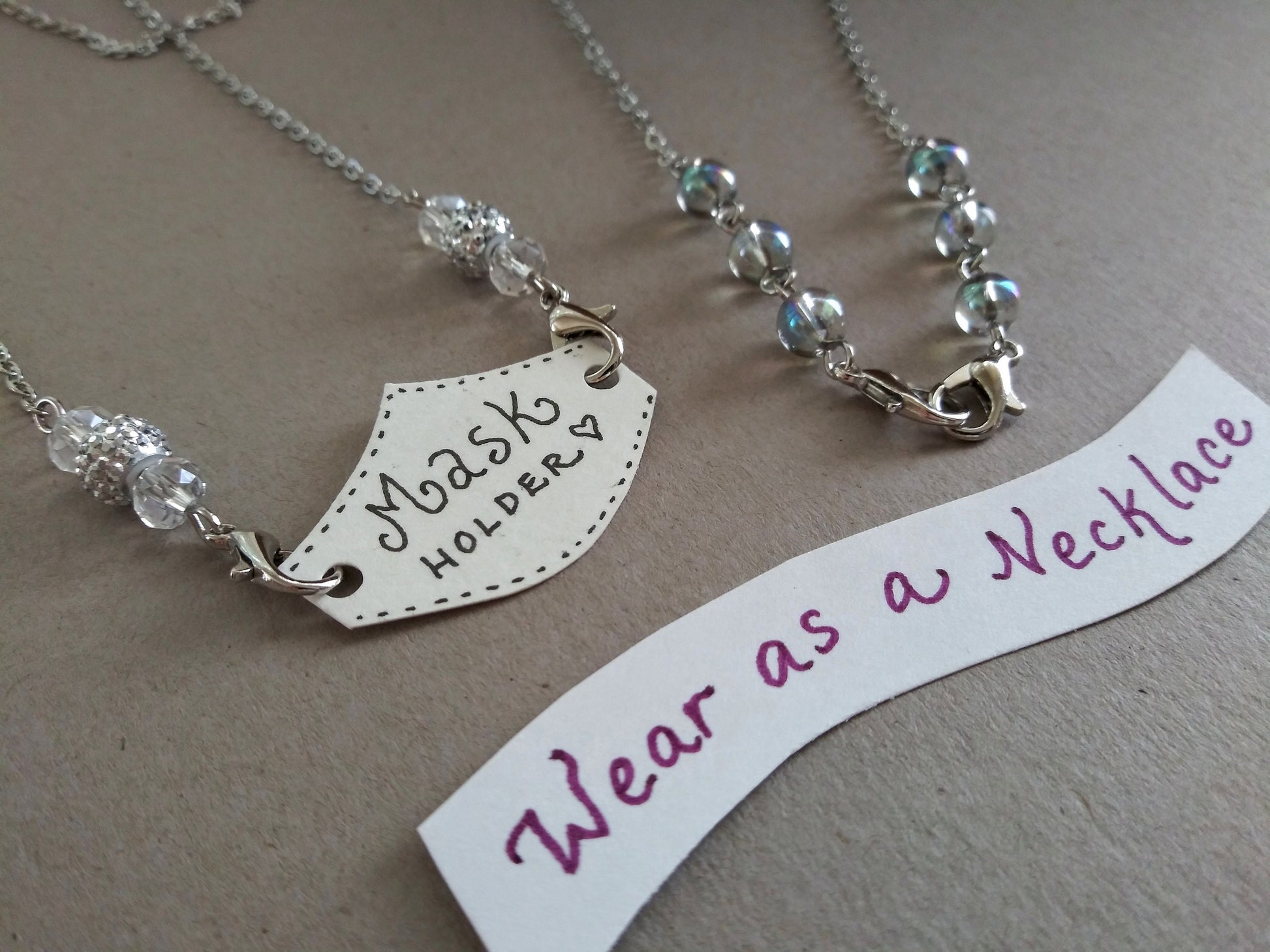 Mask holder chain with pretty sparkling crystal and "bling" beads. Created to keep your face mask nearby, safe from getting lost or contaminated. Great for when you're driving, eating or whatnot.