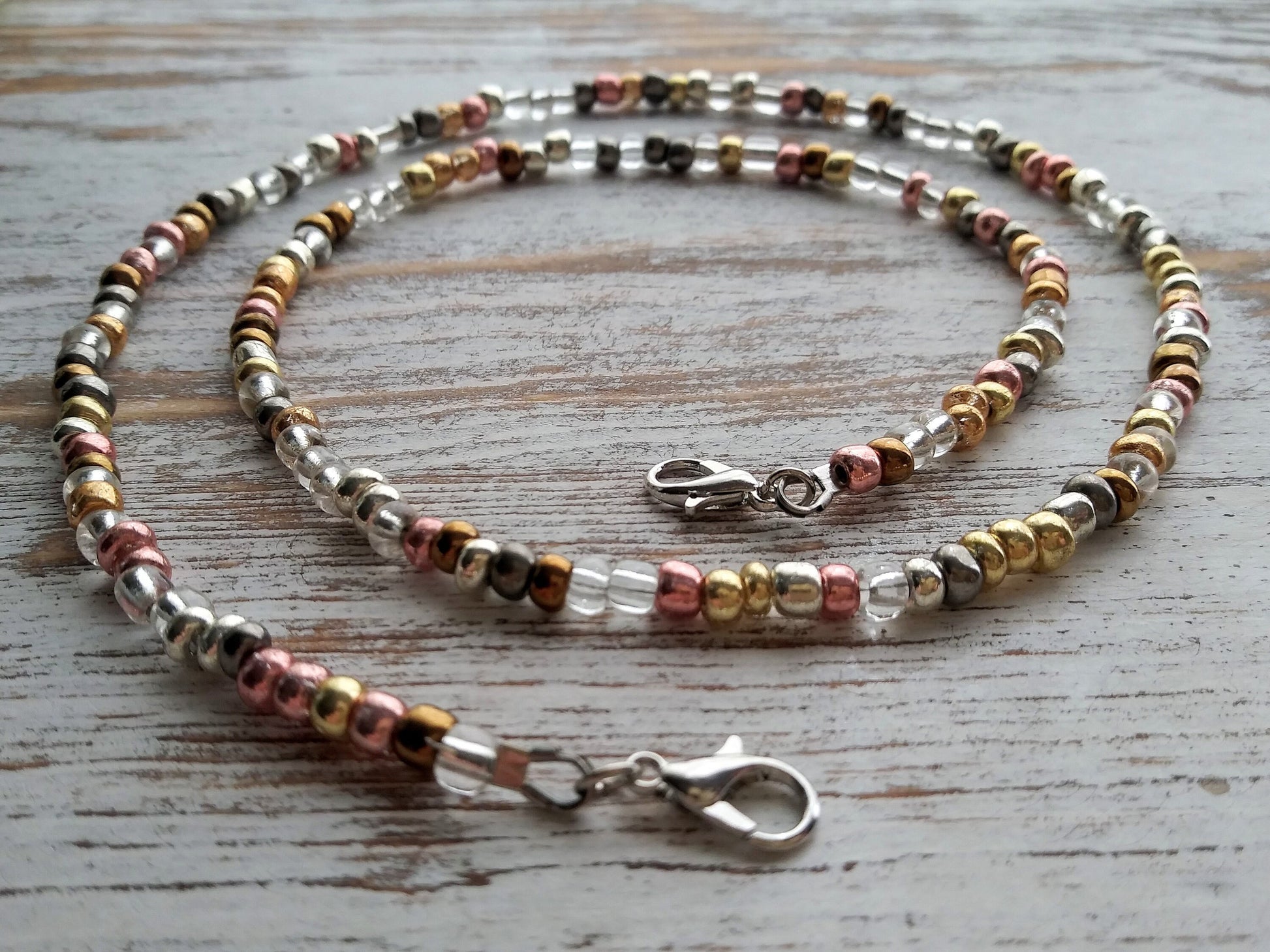 Mask Lanyard / Chain / Necklace / Holder, Beaded / Bracelet / Mask Chain / Necklace / USA / Rose Gold / Silver / Gold / Bronze / Copper