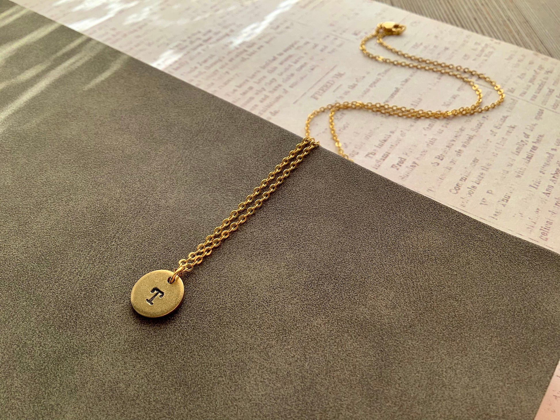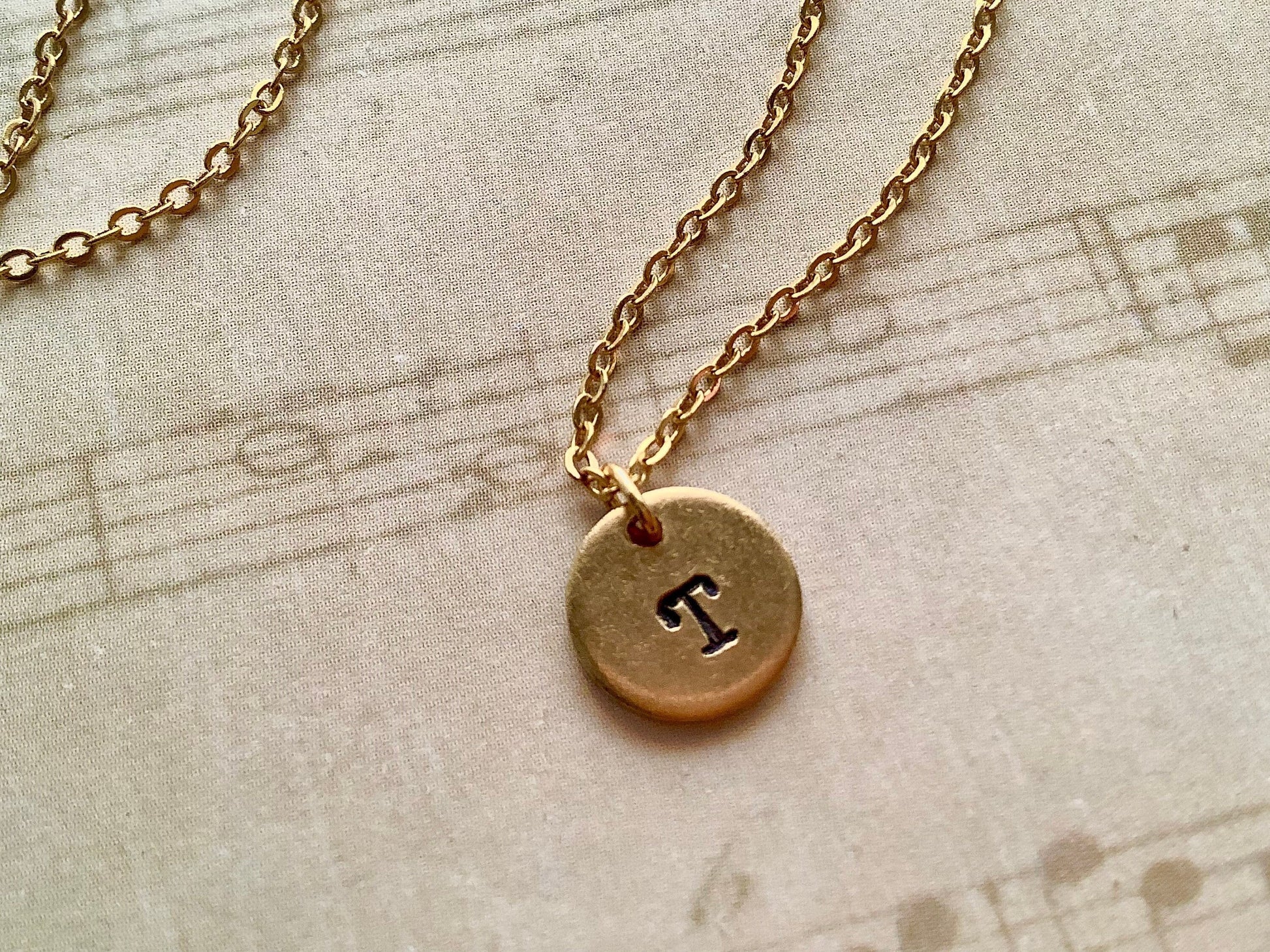 Personalized Initial Necklace, Initial Pendant Necklace, Gift for Mom, Gold Plated Brass, Hand Stamped Charm, Gold Disc for Women, Jewelry