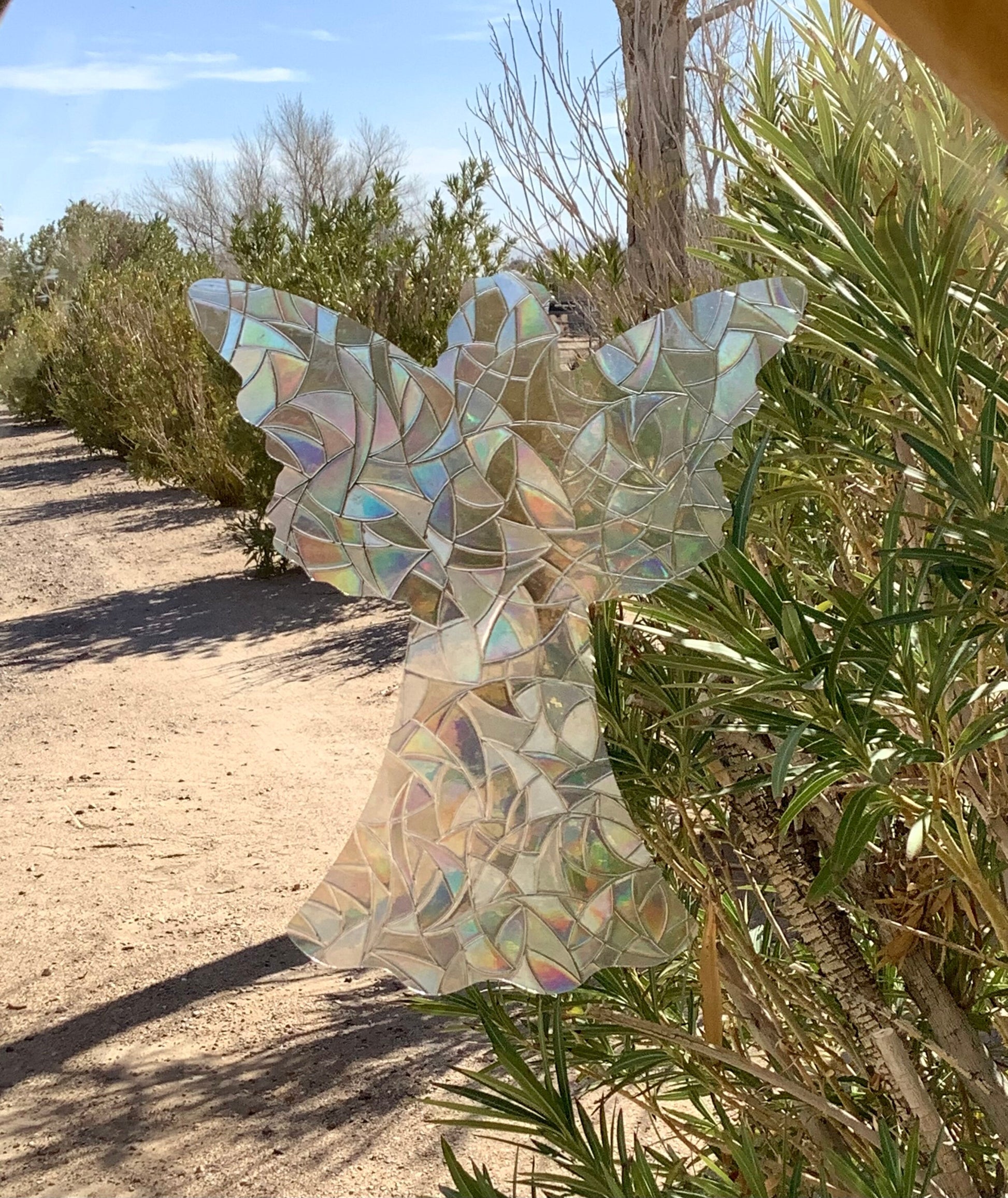 On cloudy days this charming Angel appears more like textured/frosted glass with less rainbow effect still gracing windows with its lovely cutout design.