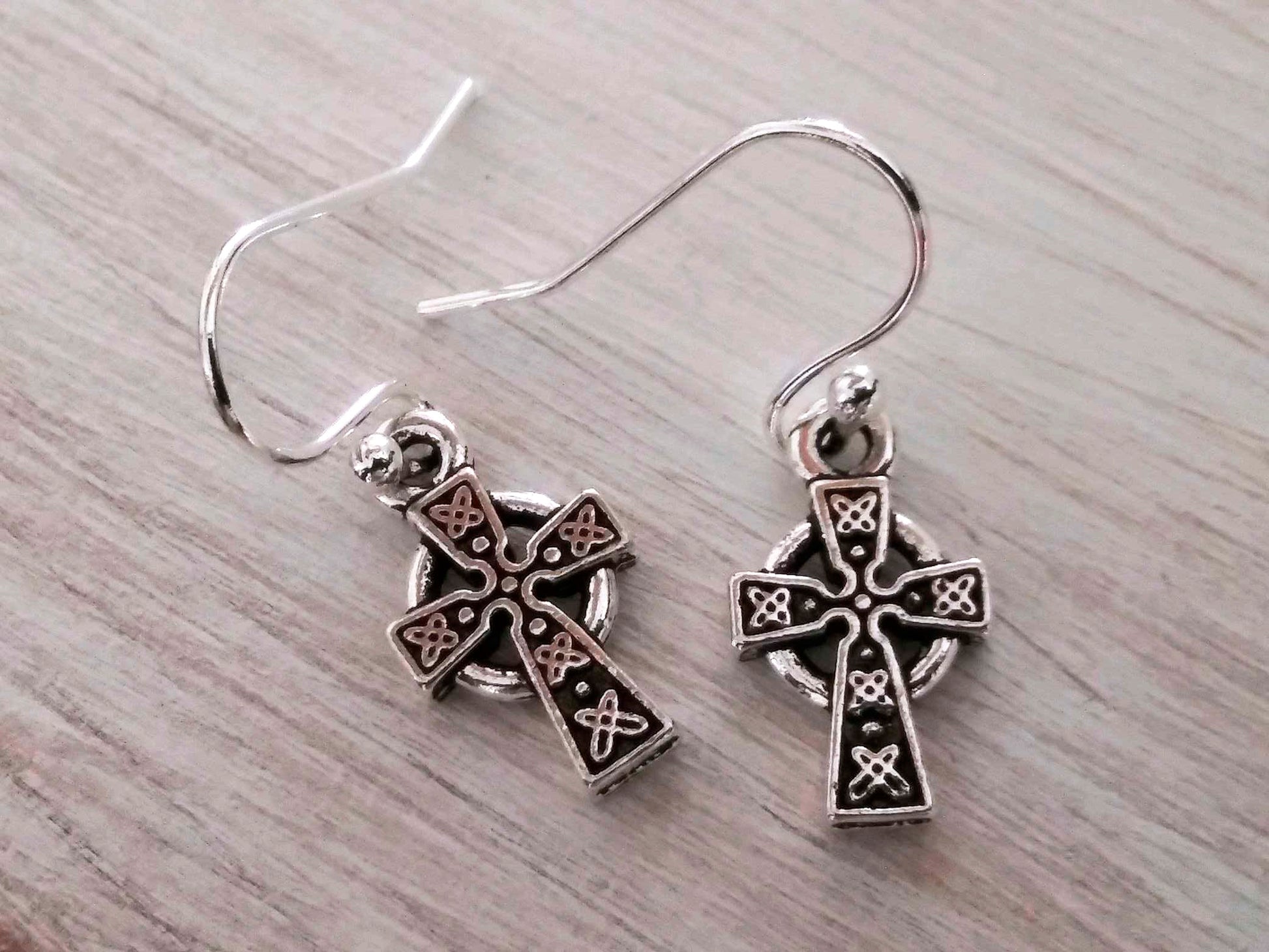 Celtic cross earrings, Silver Cross Earrings, Silver Plated Steel Hooks, Small Crosses, religious gifts, Baptism, Communion, Tiny Silver