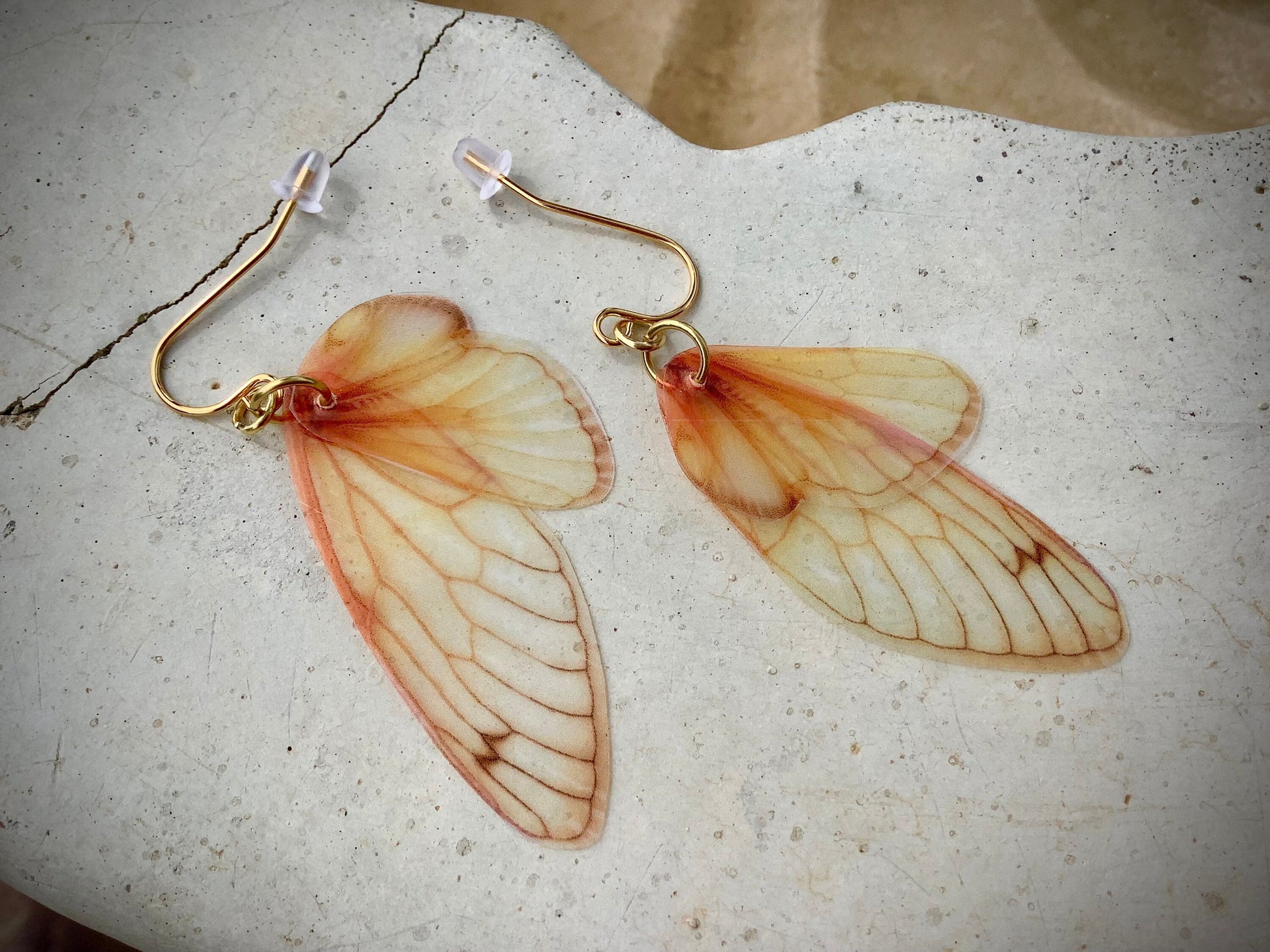 Fairy wing earrings, Costume accessories, Fairycore, Fall earrings, Cosplay Fantasy, semi transparent realistic looking wing earrings