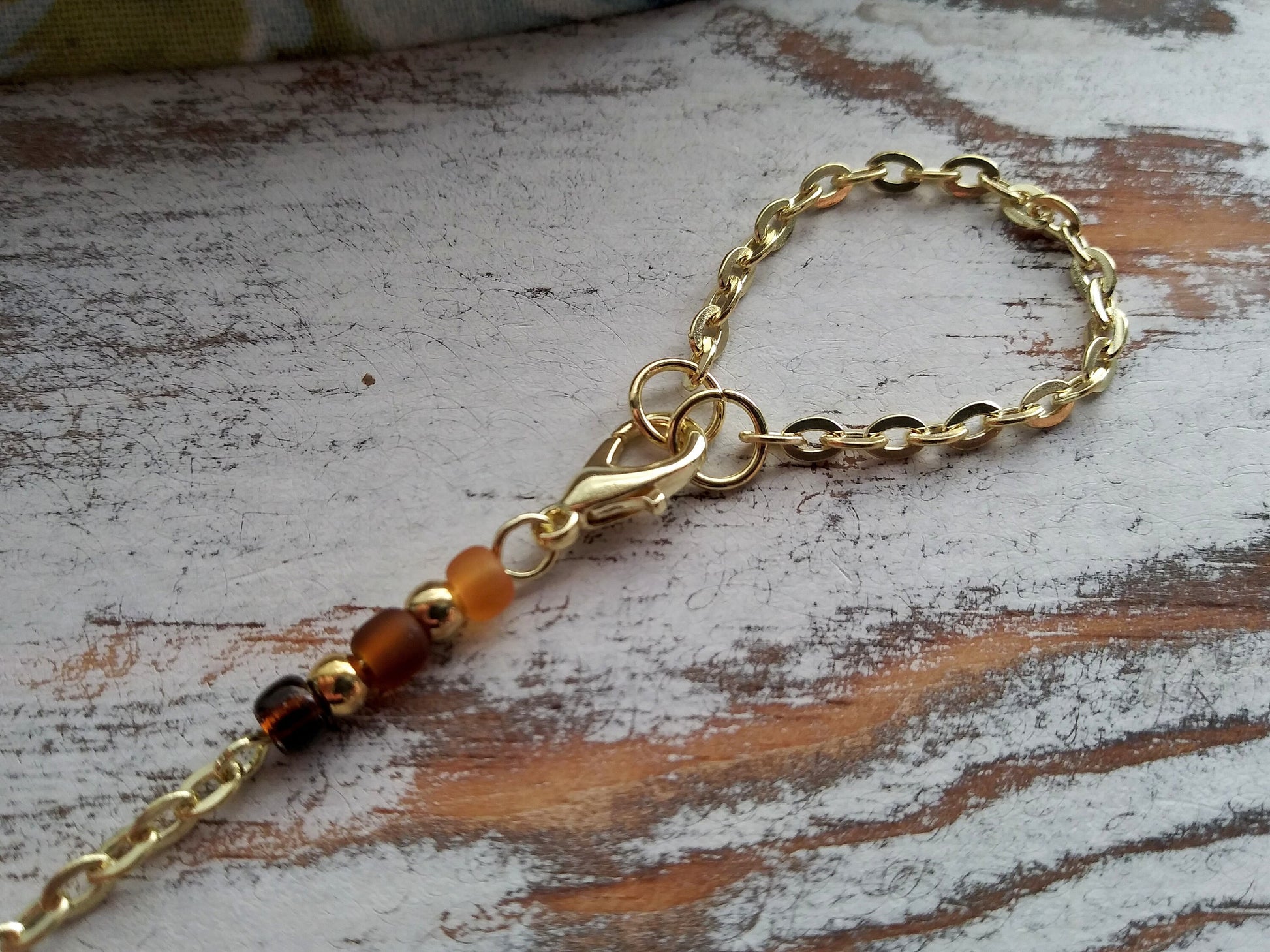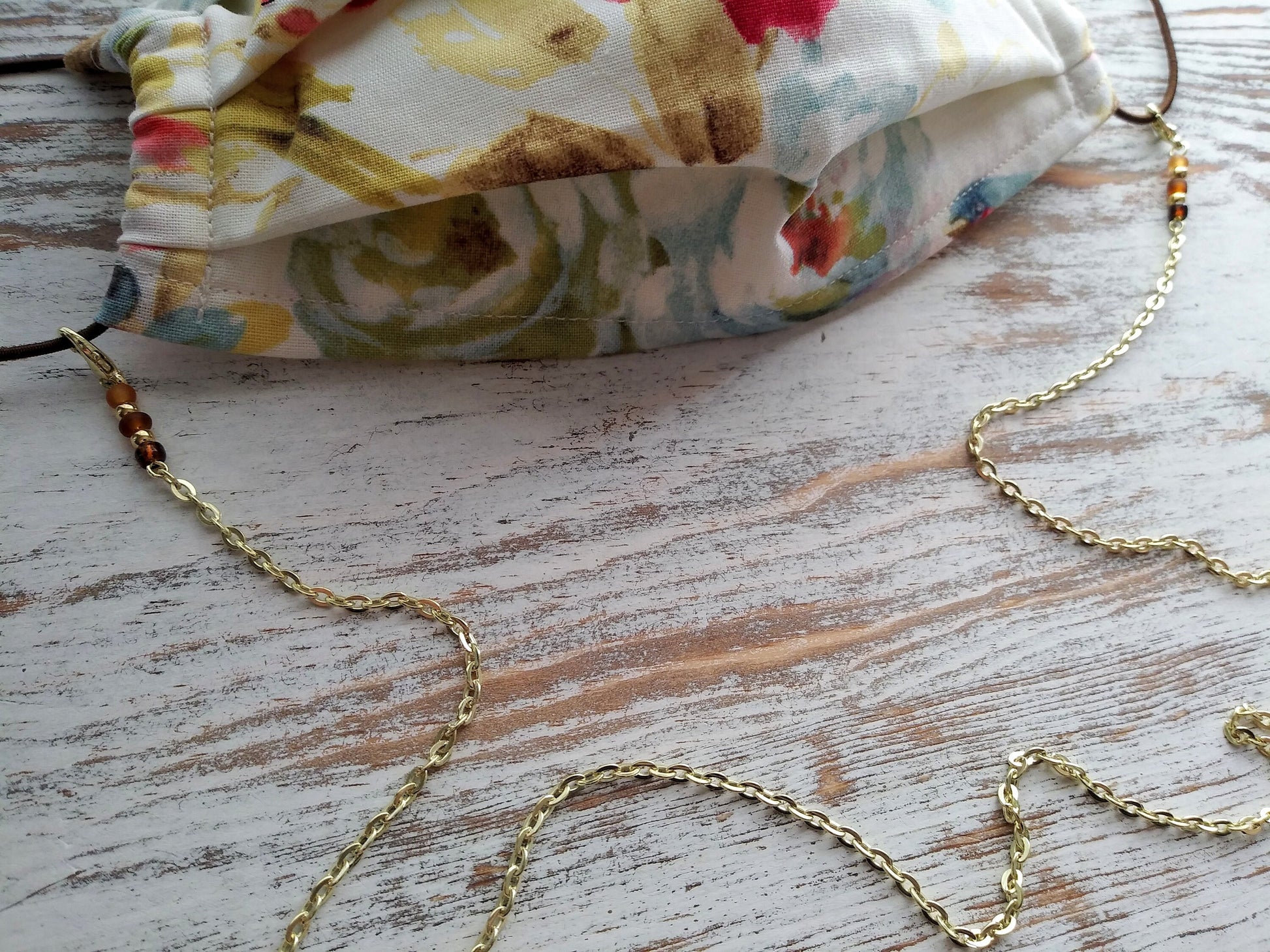 FITS ALL MASKS, Gold Mask Chain, Fall, Autumn, Face Mask Necklace, Holds Mask, Necklace Lanyard, Mask Keeper, Goldtone Chain, Glass Beads