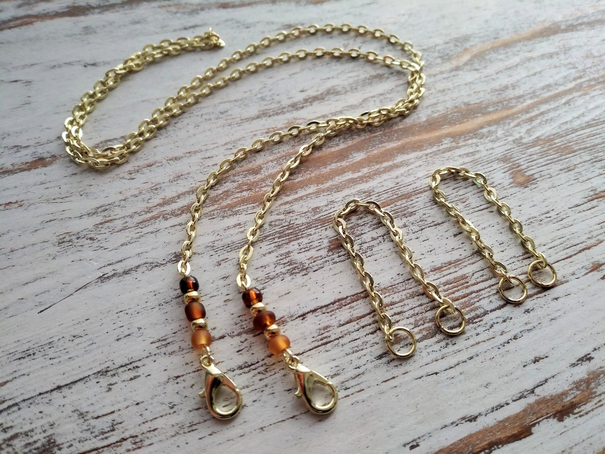 FITS ALL MASKS, Gold Mask Chain, Fall, Autumn, Face Mask Necklace, Holds Mask, Necklace Lanyard, Mask Keeper, Goldtone Chain, Glass Beads