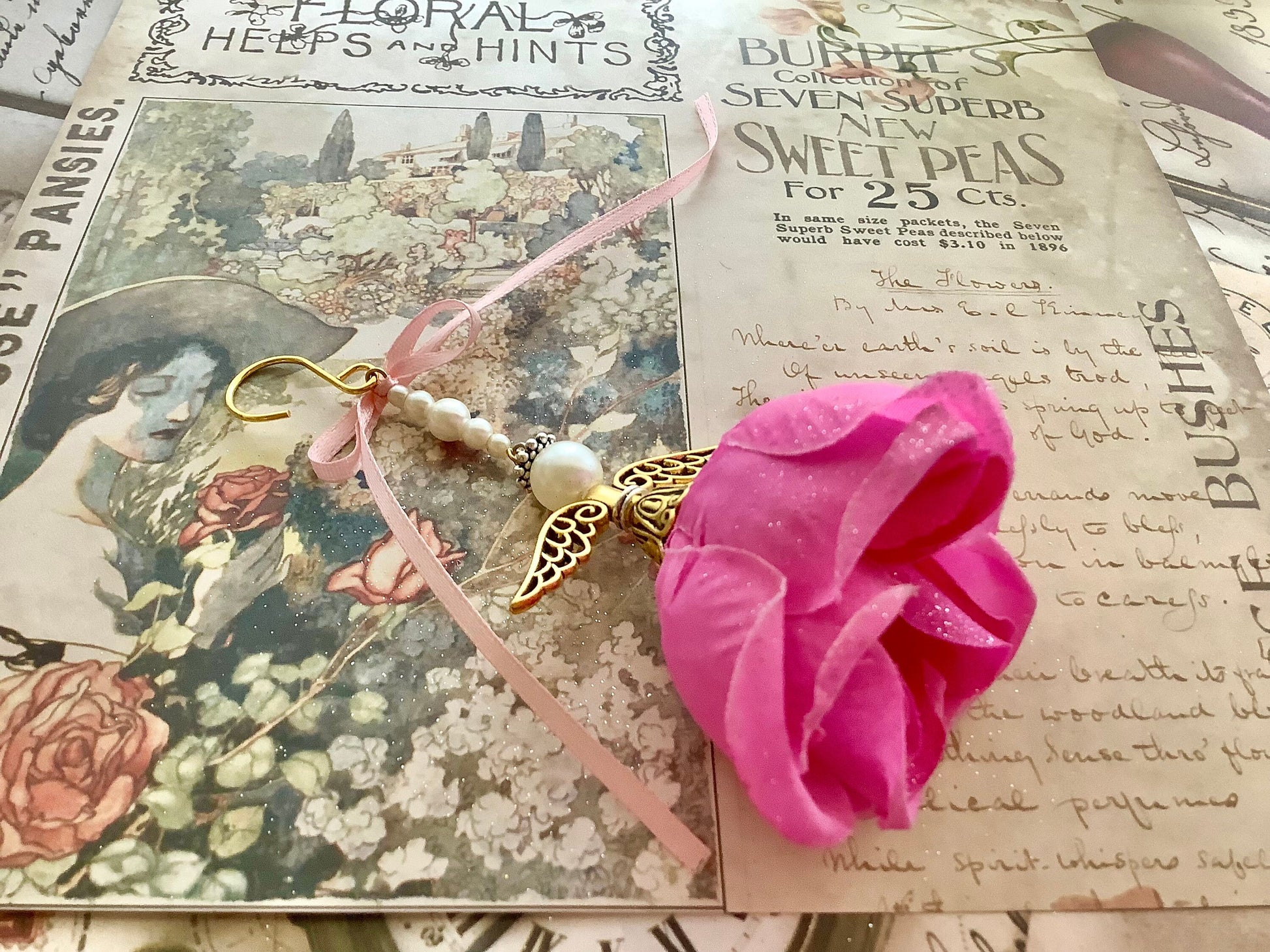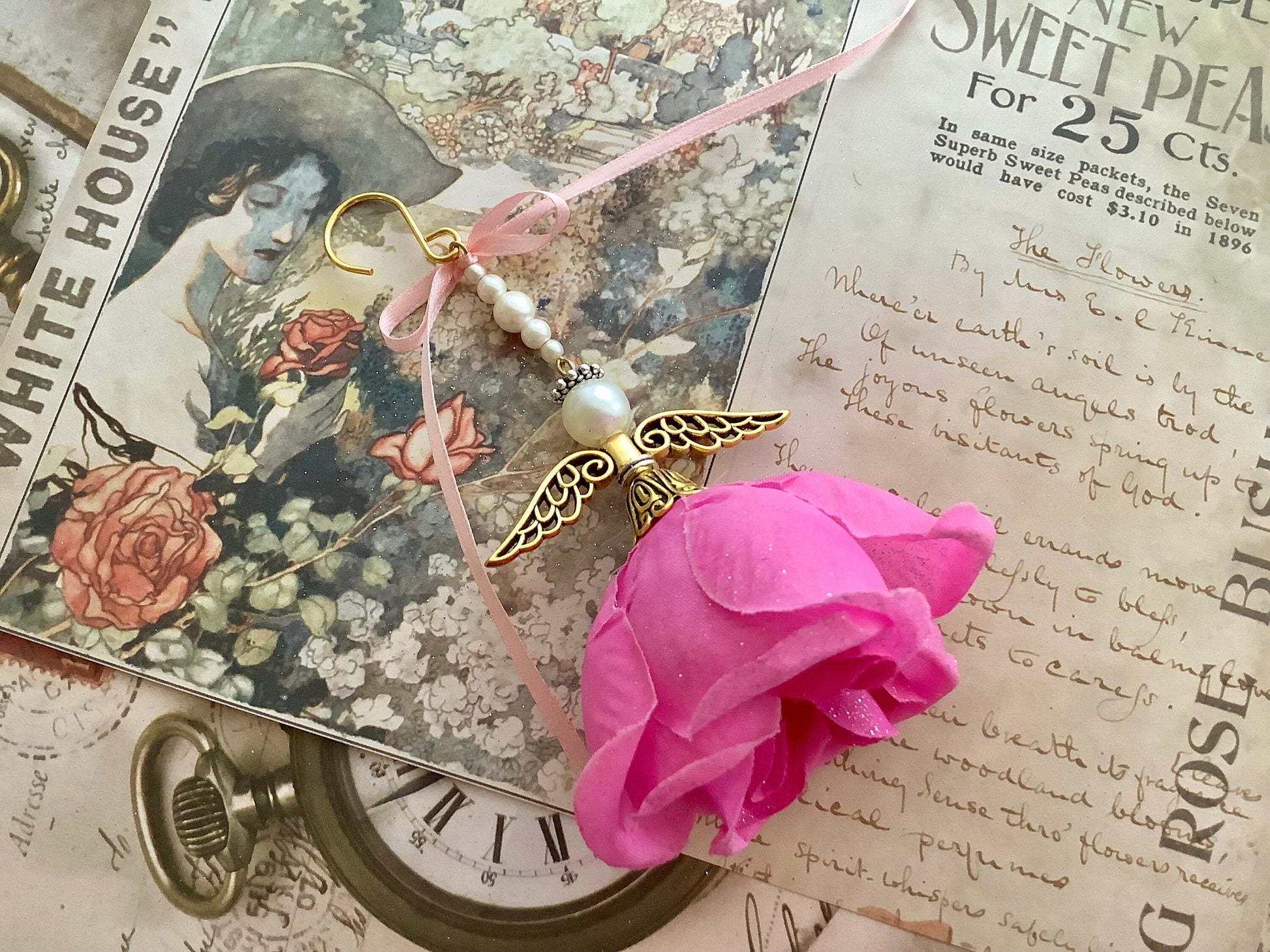 Hanging flower angel ornament with stand. An Angel to watch over you.