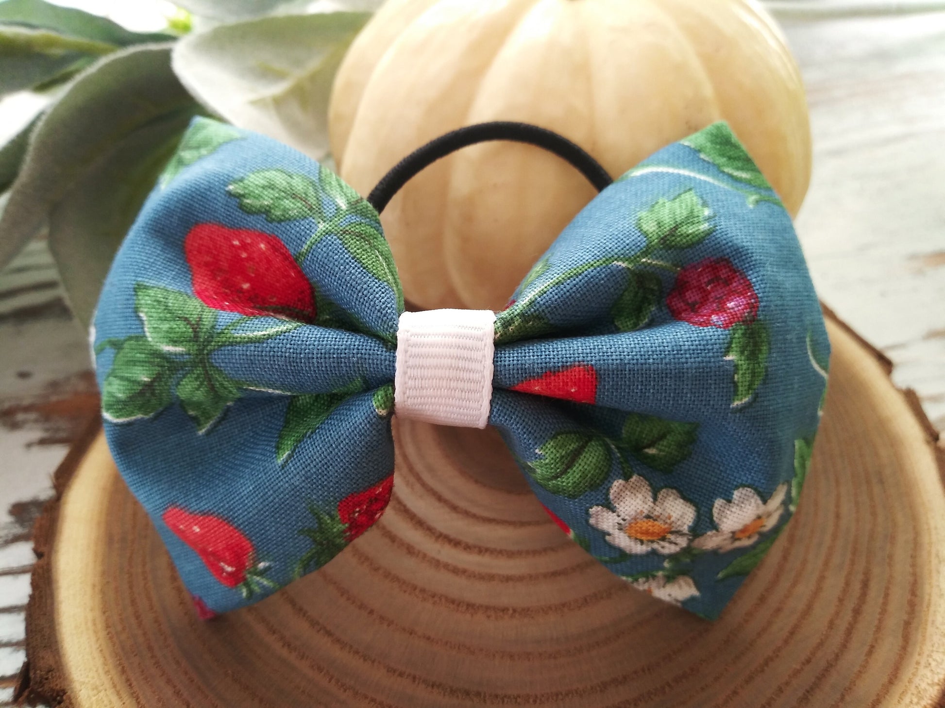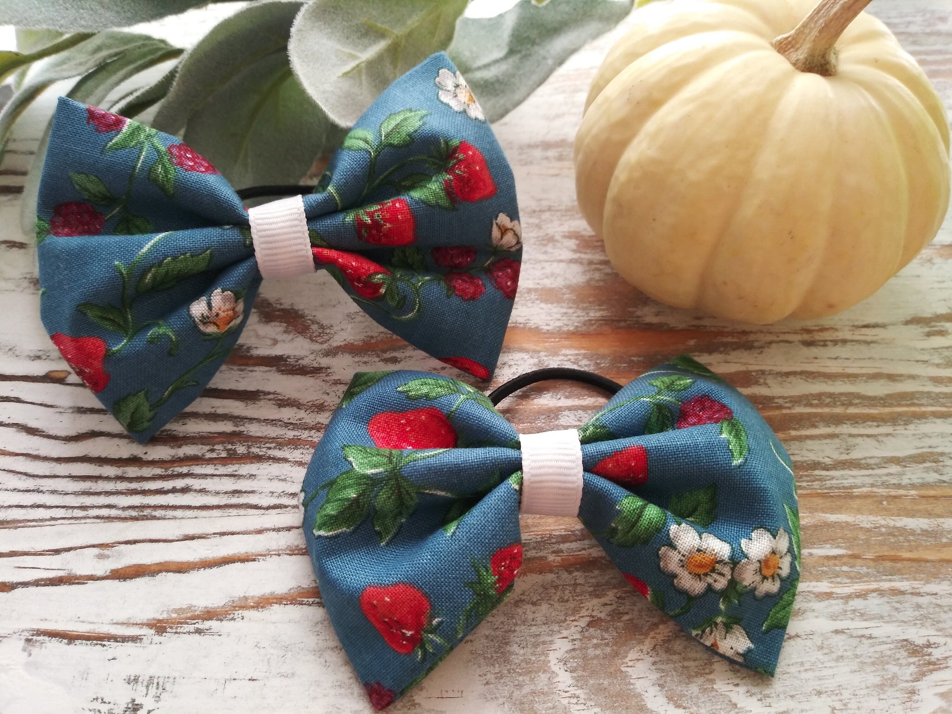 Girls Blue Hair Bow - Berries - Pony Tail Elastic - Pony Tail Bow - Hair Bows - Braids - Woodland Hair Tie -Handmade - Girls - Bands