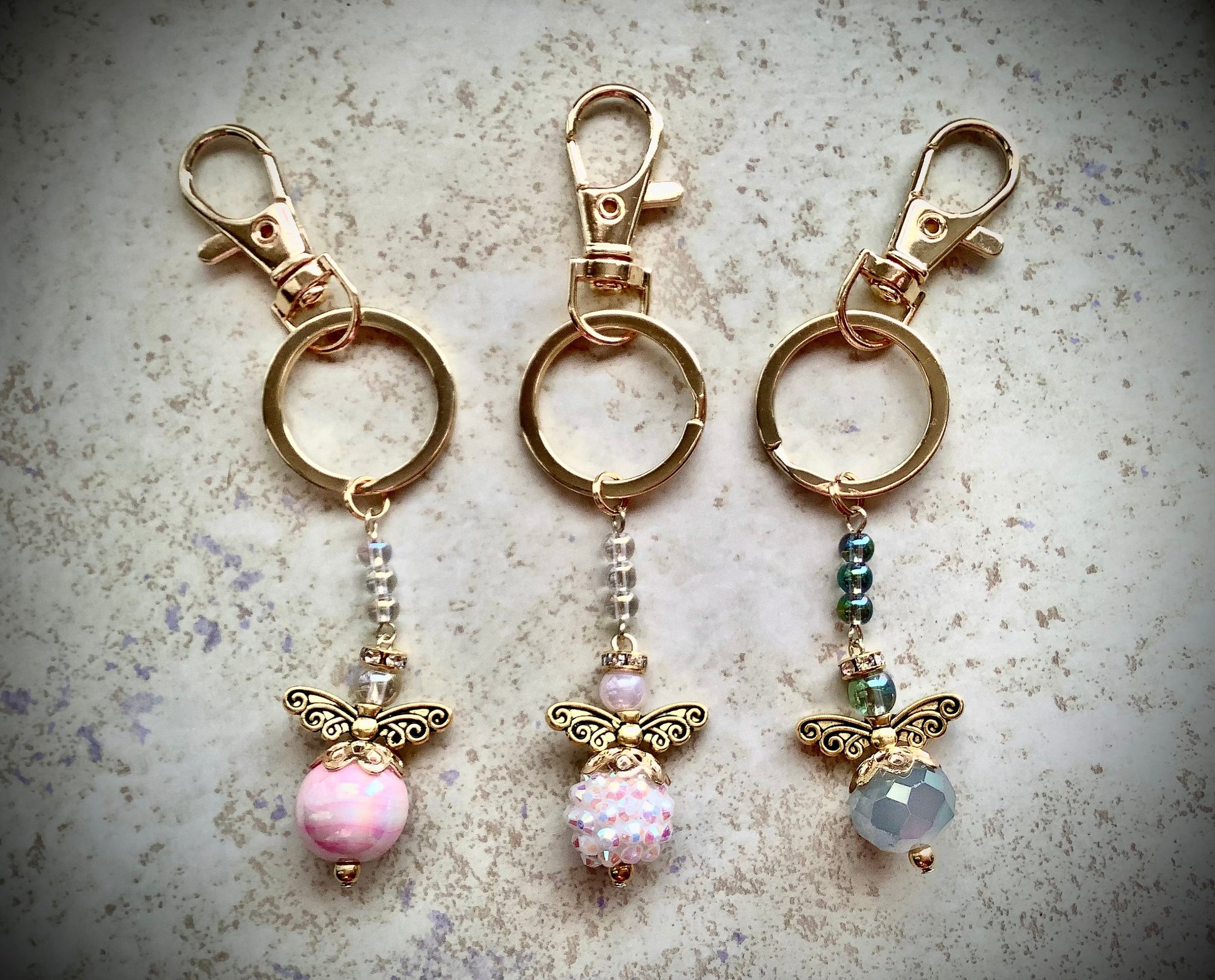 Guardian Angel Keyrings, Angel Keychains, Guardian Angel Gift, Angel Gift Charm, Beaded Angel, Angel Jewelry, Friendship Gift