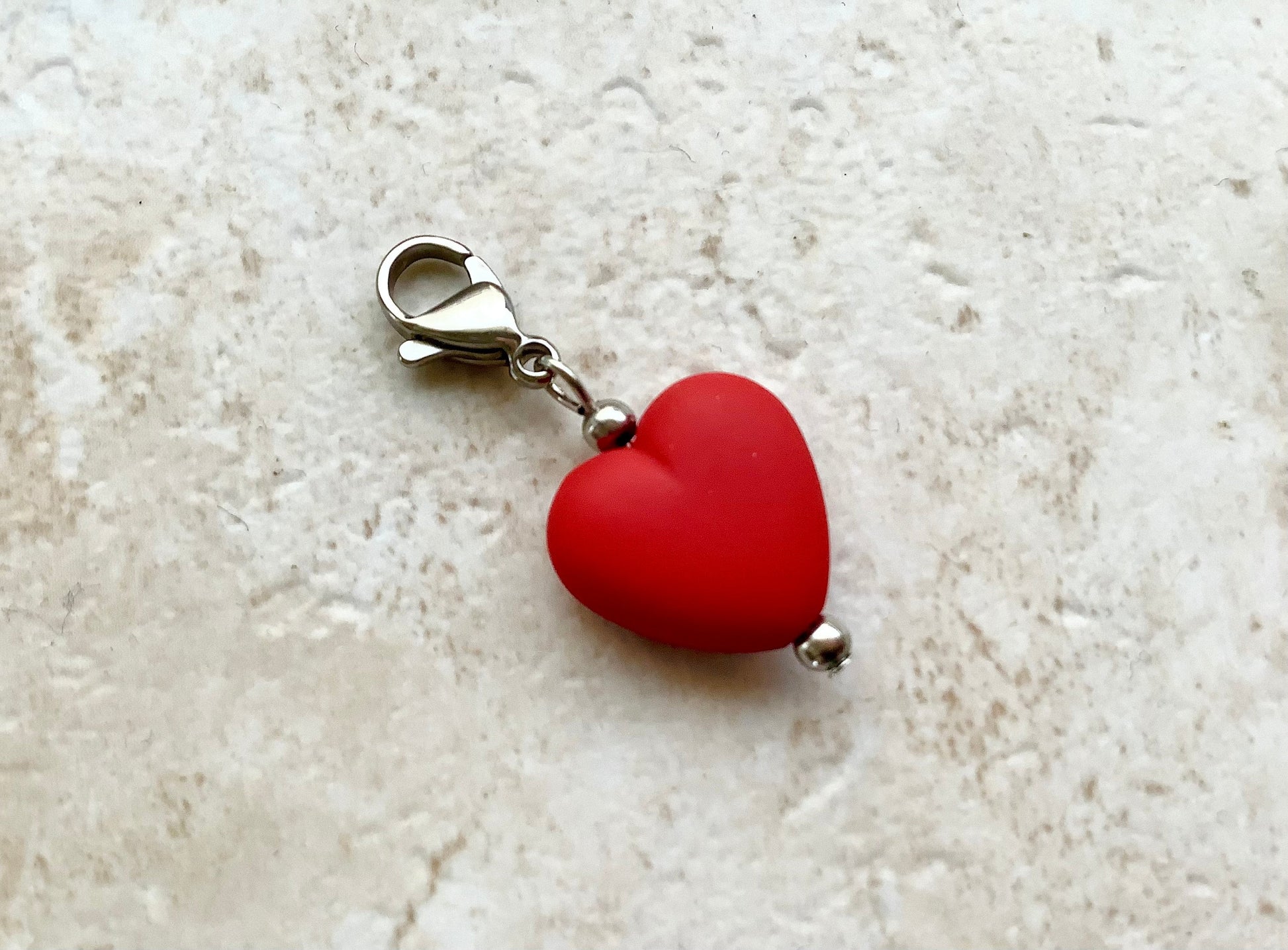Heart shaped zipper pull, clip on charm, purse charm, bag charm, jacket charm, sweater charm, planner charm, badge charm, heart tugger charm