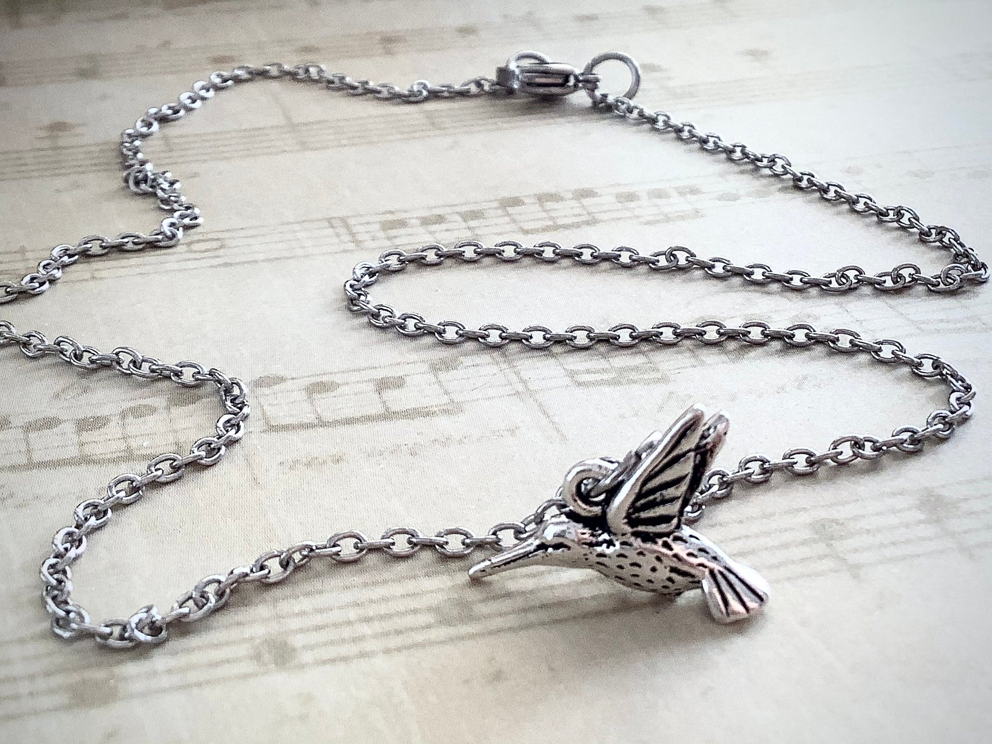 Hummingbird necklace, stainless steel chain, silver hummingbird charm necklace, silver pendant, bird necklace, hummingbird charm necklace