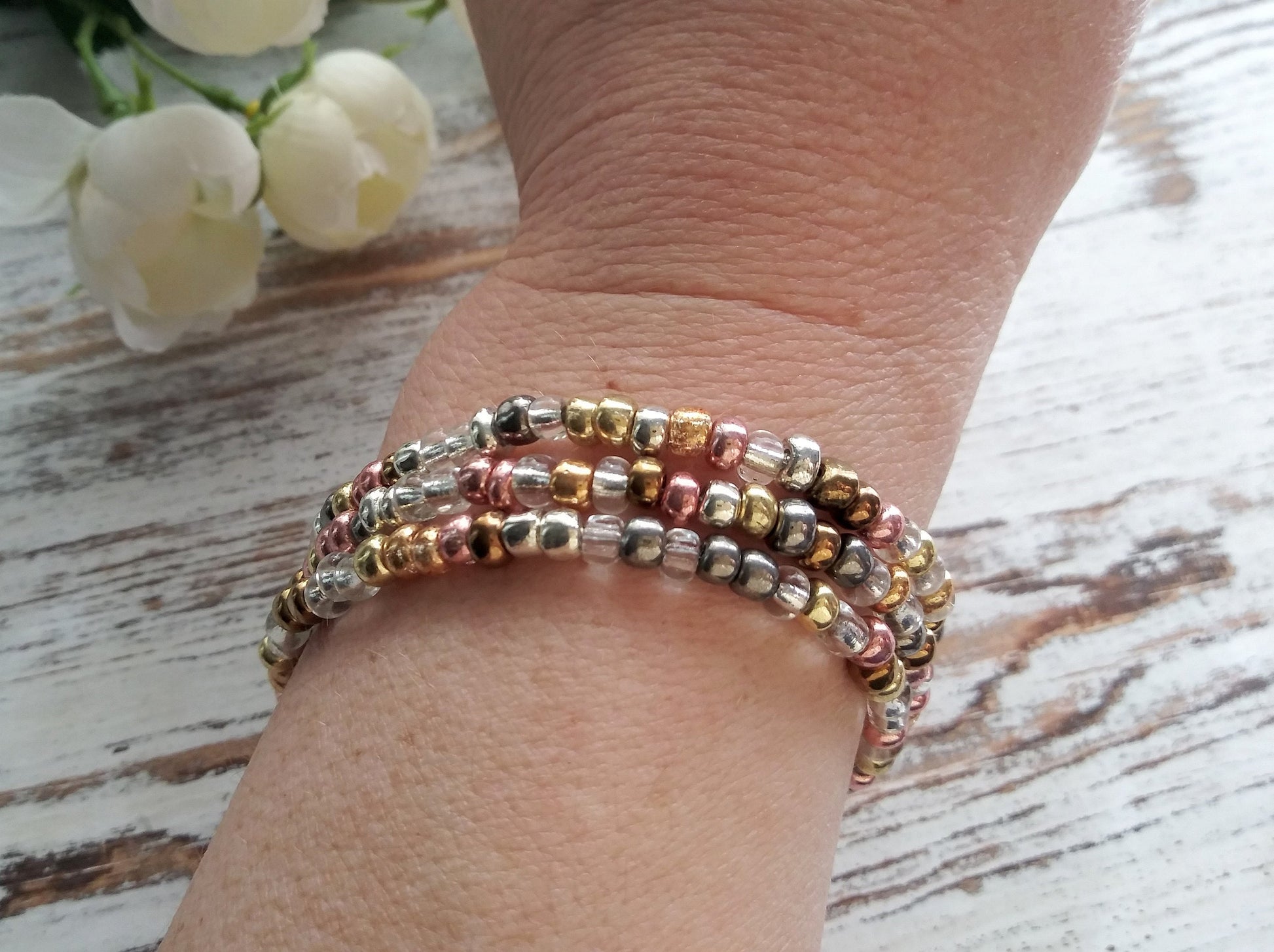 Just under 23 inches long beaded face mask holder necklace that also converts to a regular necklace or bracelet as shown