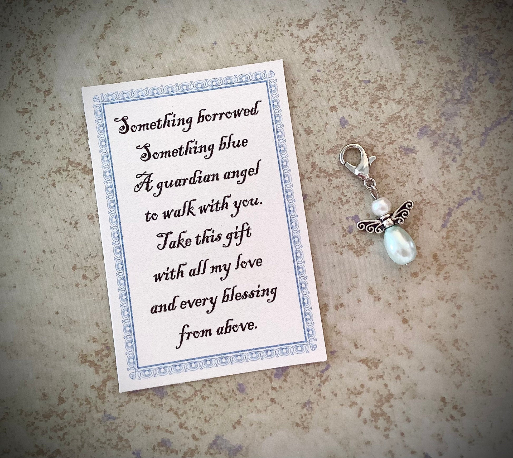 This angel comes with a sweet message to deliver your love and well-wishes to the bride to be.