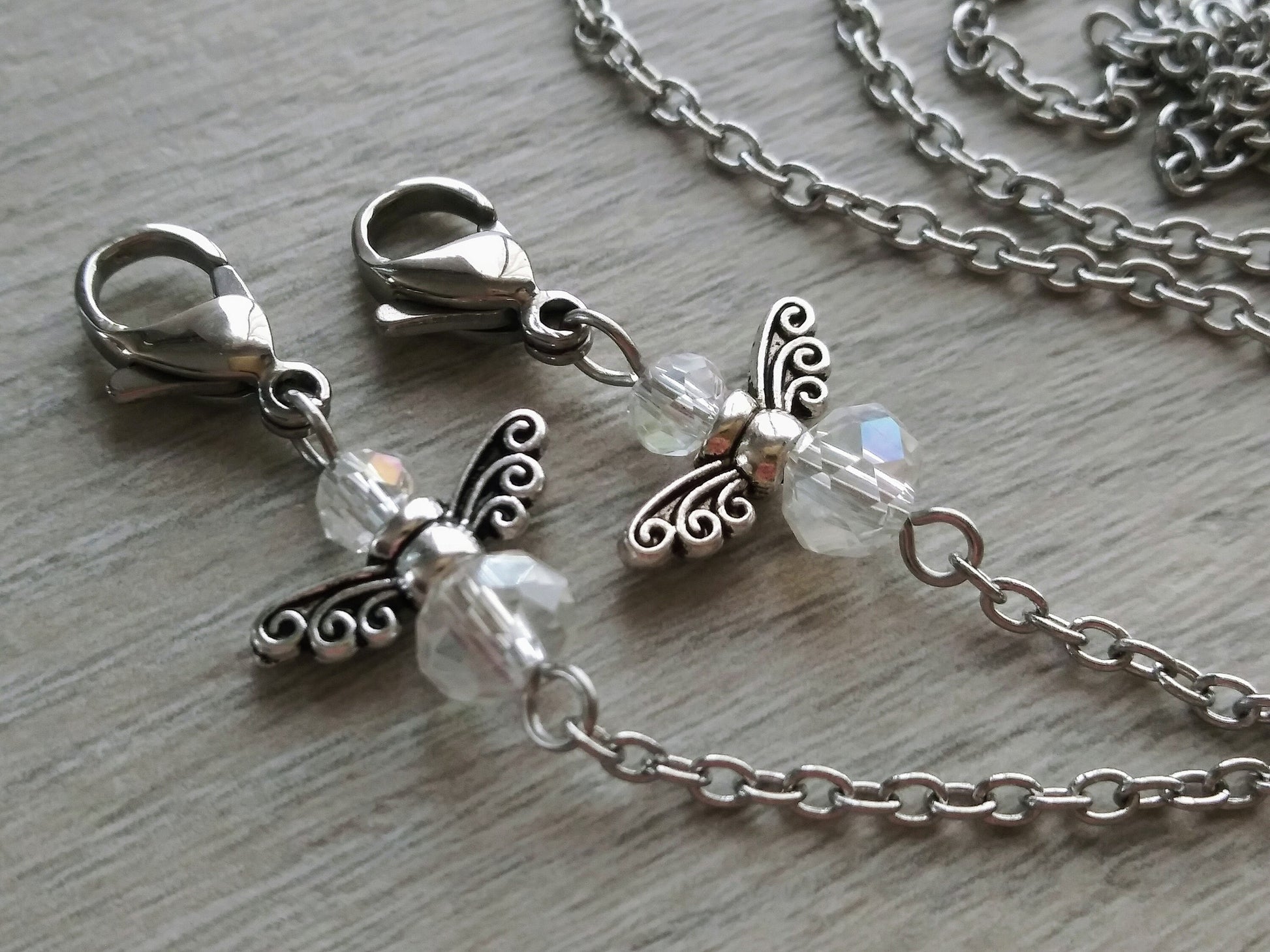 Tiny Angels Mask Chain, Angels, Stainless Steel, Face Mask Chain, Mask Necklace, Chain for Mask, Mask Holder, Mask Keeper, Clear Glass Beads