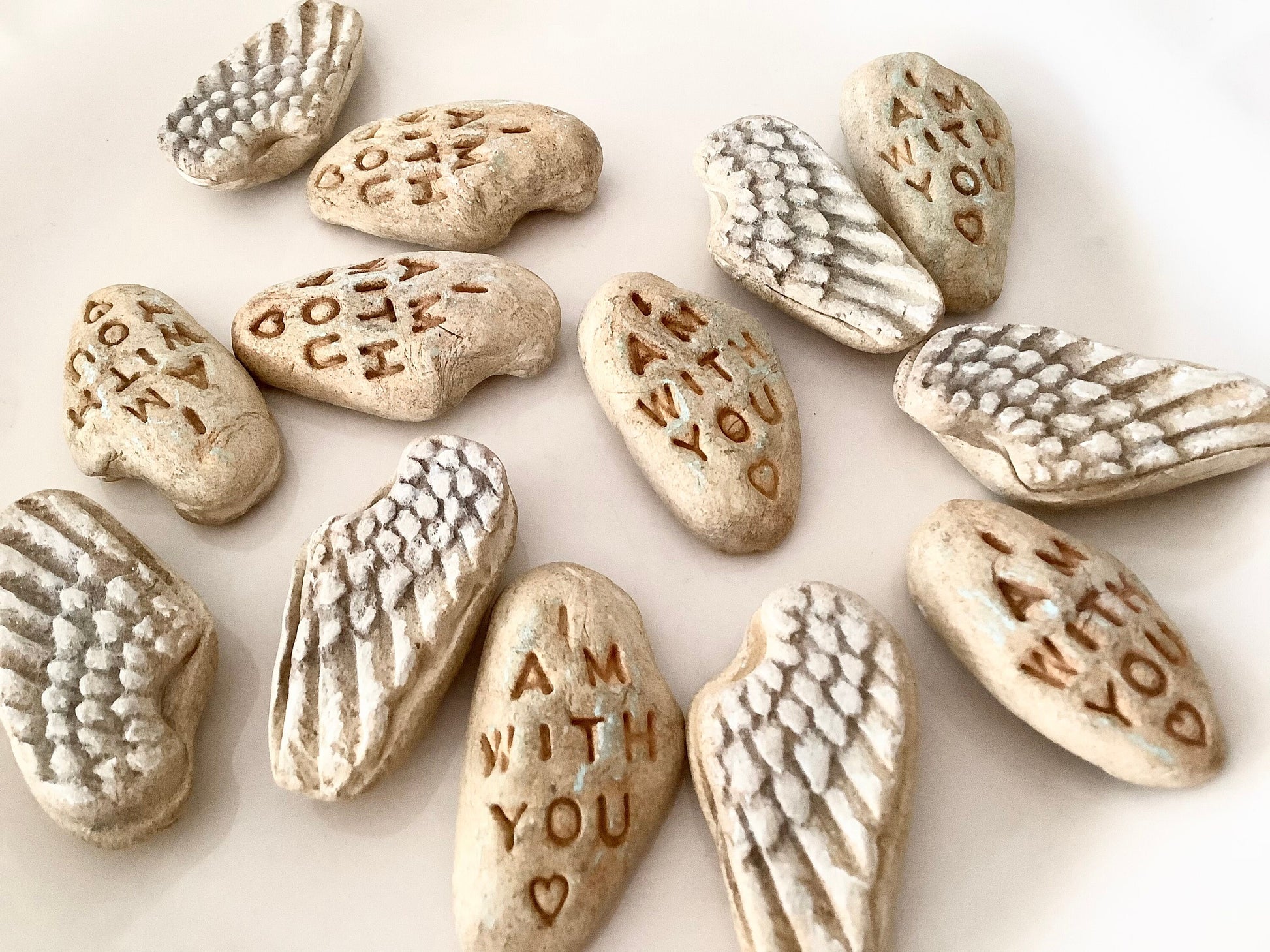 “I am with you” wedding keepsake. Hand formed Clay Angel Wing Keepsake