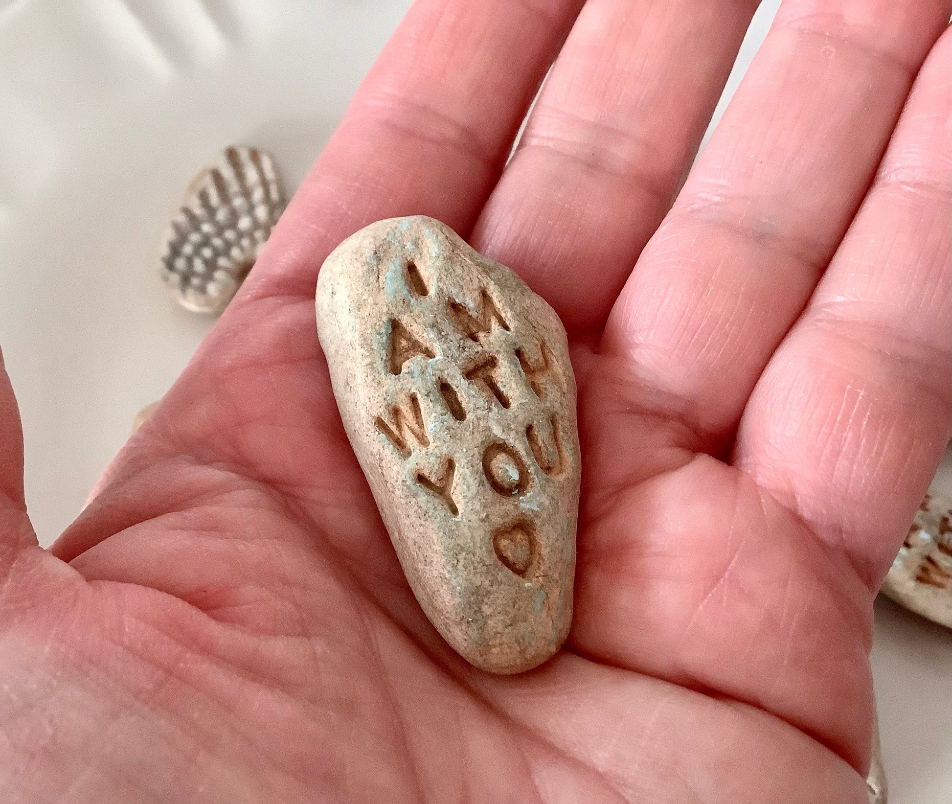 This sweet reminder is made of clay and made to resemble stone without the weight.